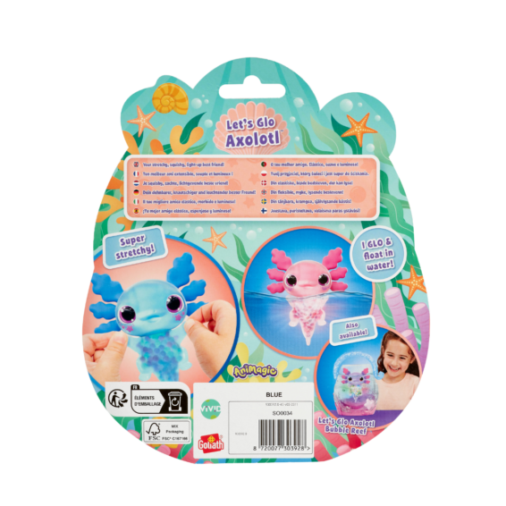 Wanneer je Let’s Glo Axolotl in het water legt zal hij lichtgeven van blijdschap. De Axolotl zal ook net onder het waterniveau blijven drijven. Naast dat de Axolotl lichtgeeft is hij ook nog eens supoer leuk om mee te spelen. De waterparels in zijn buik maakt het een prettig voorwerp om vast te houden. Ook is hij heel elastisch. Trek de Axolotl uit elkaar en zie hem weer terugkeren naar zijn oude vorm.